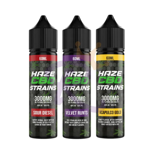 Many Haze CBD e-liquids are available in high-strength options such as 3000mg CBD in 60ml bottles with a balanced 50/50 VG/PG ratio, helping deliver smooth vaping and consistent CBD intake with compatible vape devices. The brand also offers CBD oils for precise dosing and CBD gummies for a simple and enjoyable way to take CBD.